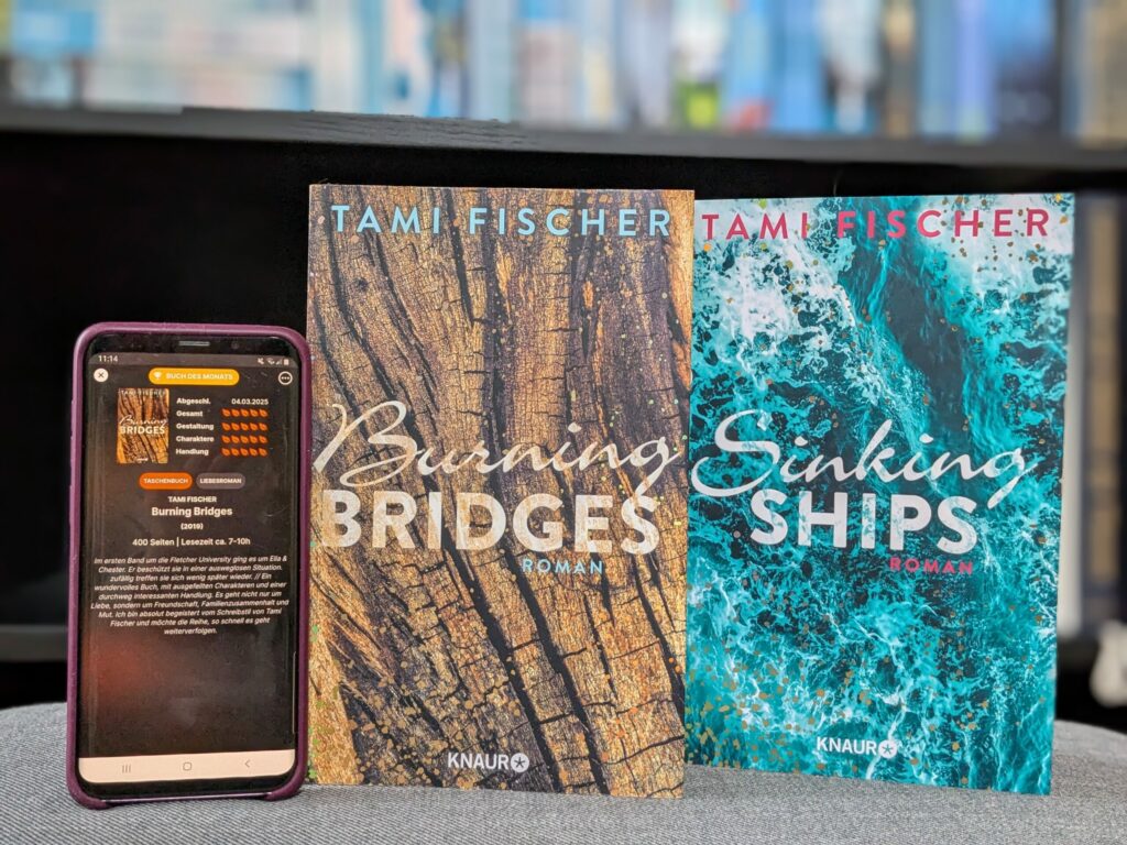 “Burning Bridges” von Tami Fischer lag schon seit Anfang 2024 auf meinem SuB. Nun habe ich dazu gegriffen und fand es fantastisch. Hierbei handelt es sich um den Auftakt der “Fletcher-University-Reihe”. Insgesamt umfasst diese 5 Bände, die alle von anderen Protagonisten des selben Freundeskreises handeln. Da ich nicht lange warten wollte, kam Ende des Monats kam der Nachfolgeband “Sinking Ships” dazu. Die Covergestaltung hat mich absolut begeistert, besonders Band zwei und fünf sind absolute Hingucker.