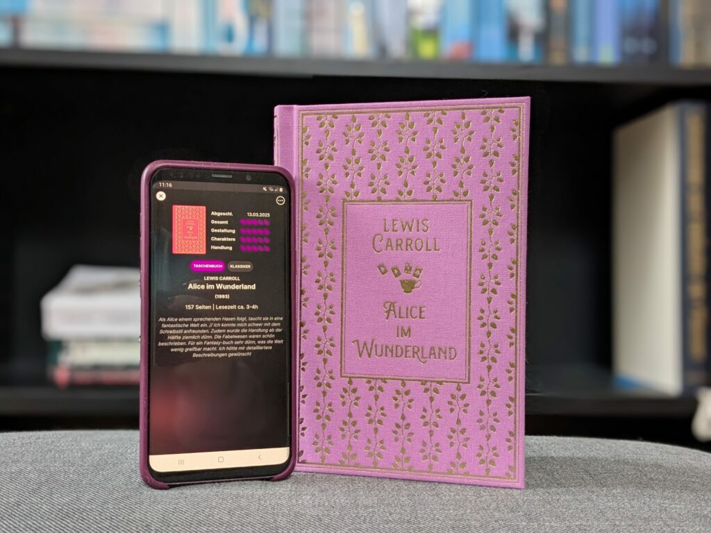 Im März durfte ein Klassiker nicht fehlen. Dieser war “Alice im Wunderland” von Lewis Carroll. Die Ausgabe, die ich besitze, ist im Nikol-Verlag erschienen und hat eine wunderschöne Goldprägung auf einem rosa Cover. Mit nur 157 Seiten gute Lektüre für zwischendurch.